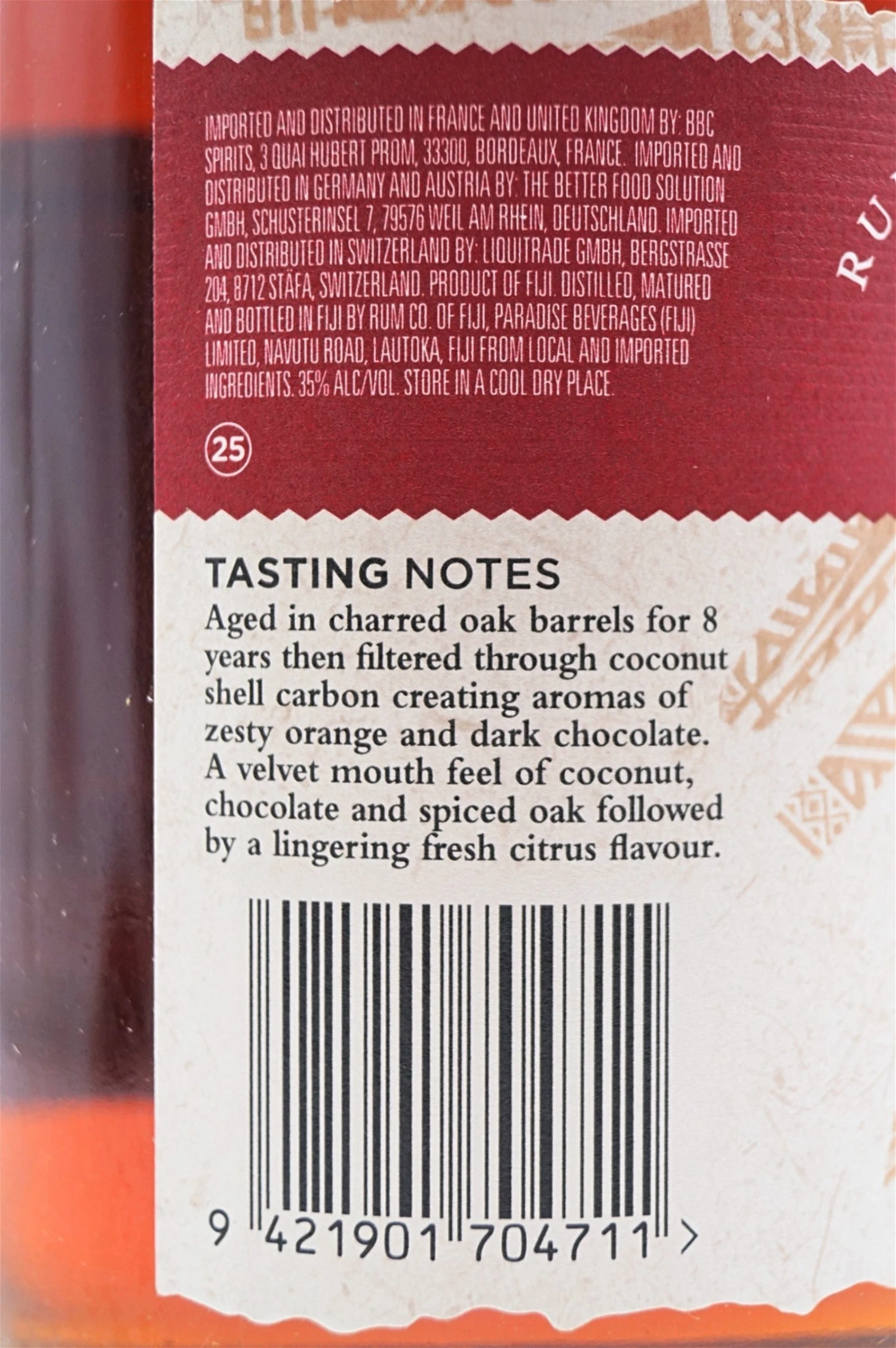 Gereift in speziell ausgewählten Ex-Bourbon-Eichenfässern im perfekten tropischen Klima der Fidschi-Inseln.