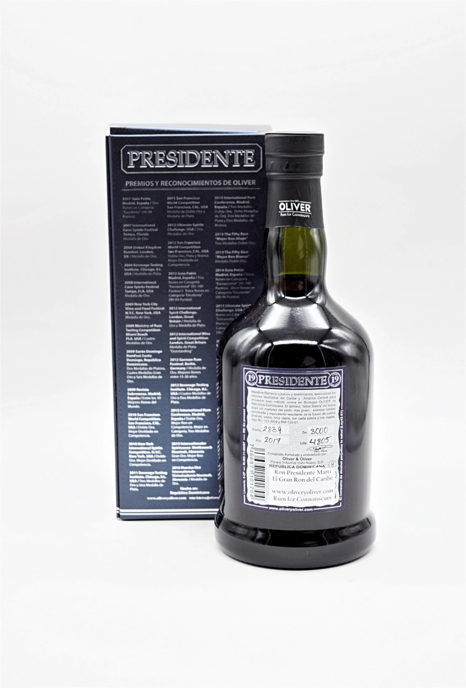 Presidente ist ein Rum mit einem doppelten qualitativen und sensorischen Umfang. Ausdruck höchster Qualität, 1995 von kubanischen Rummeistern in Santo Domingo geschaffen, um die Erinnerung an den Apostel Jose Marti zu ehren und an das erste Jahrhundert seines Todes zu erinnern. Eine majestätische und unschlagbare Reihe von Rumsorten, die vom Oliver-Haus kreiert wurden und heute zur Freude der Feuchtigkeit abgefüllt werden.